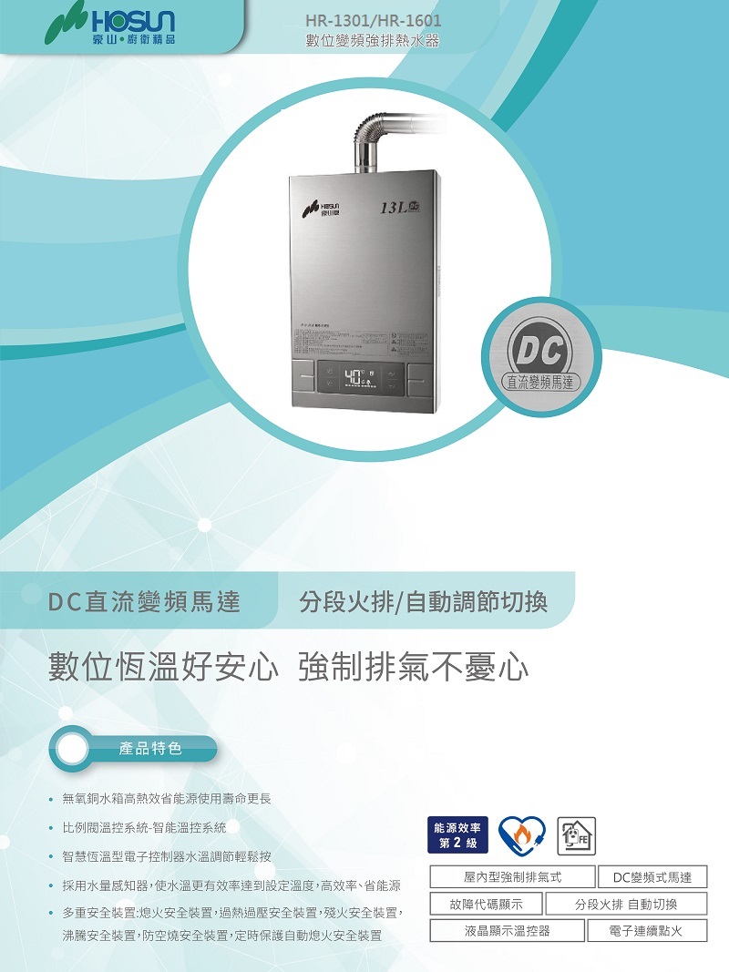 豪山高cp值的熱水器HR-1301/-1601系列-